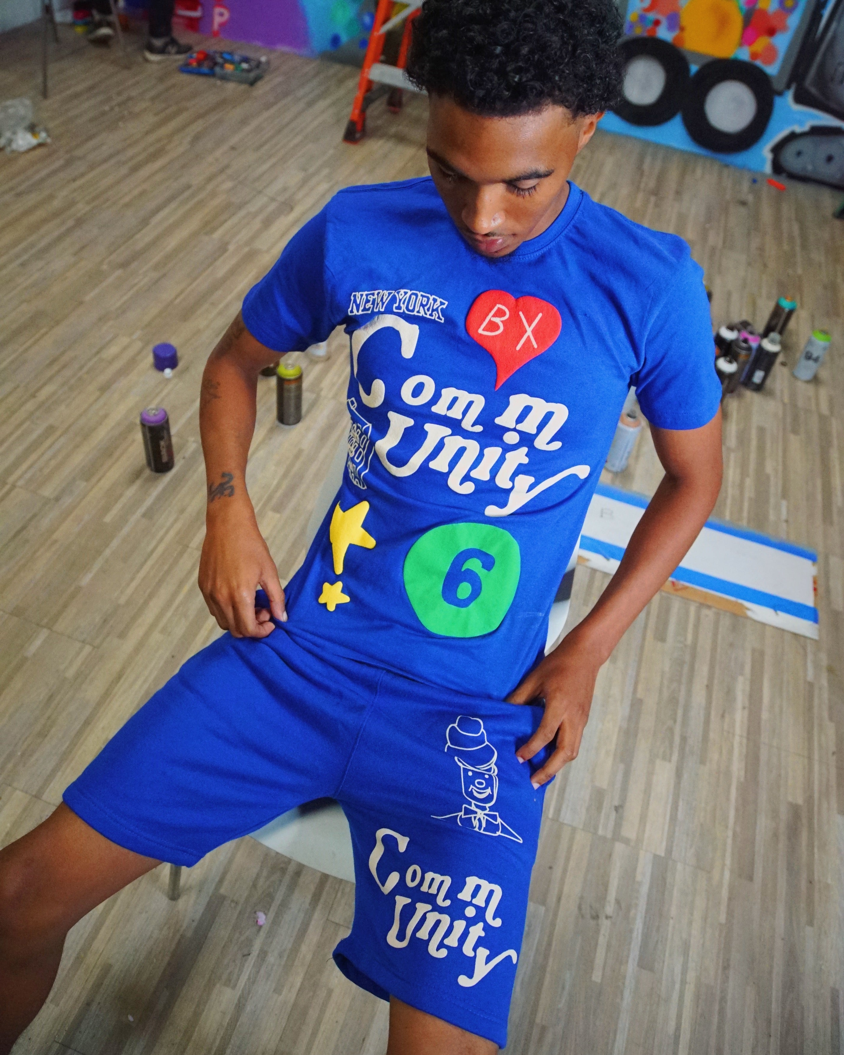 CommUNITY collab between brother and sister co-founders of Bronx Native. Came together to create a limited edition release to empower unity, togetherness and family in our borough. Tee Shirt and shorts combo.